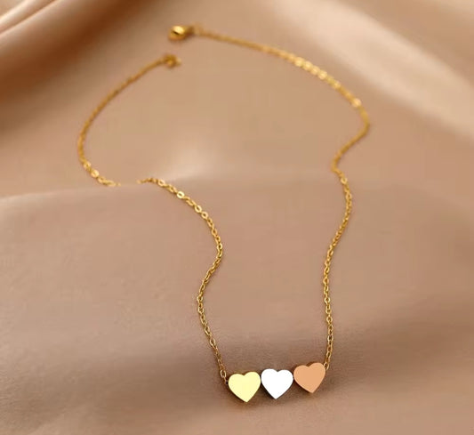 Cadena de acero inoxidable con dijes de corazón 3 colores tipo cartier/ Stainless steel chain with 3-color Cartier-style heart charms
