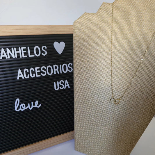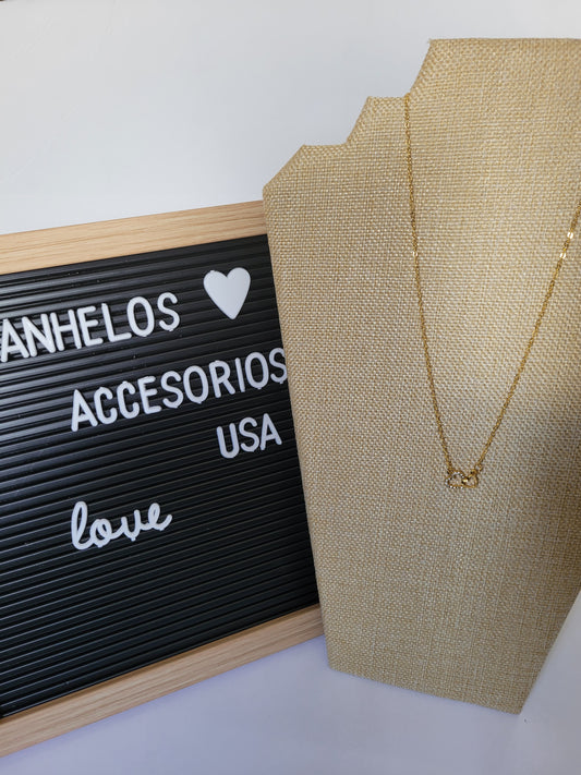 Cadena de acero inoxidable con dije de infinito con zircones/ Stainless steel chain with infinity pendant with cubic zirconia.